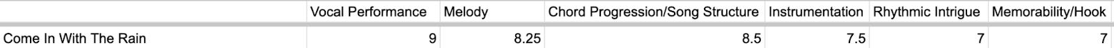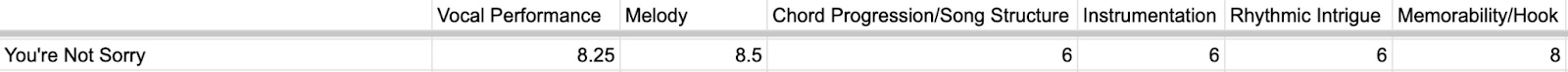 Vocally, this song is so well done. All throughout the song, her voice bends every which way through every nook and cranny of the melody, bringing out the emotion and the feeling of the song in a way that really paints a picture more than the lyrics do.