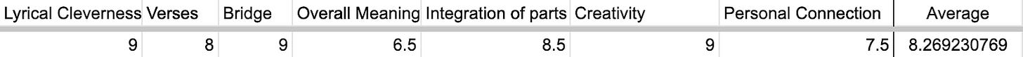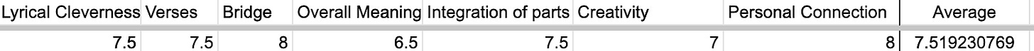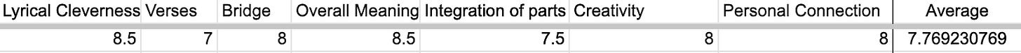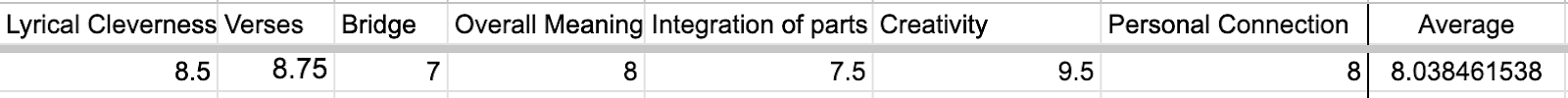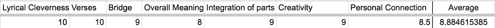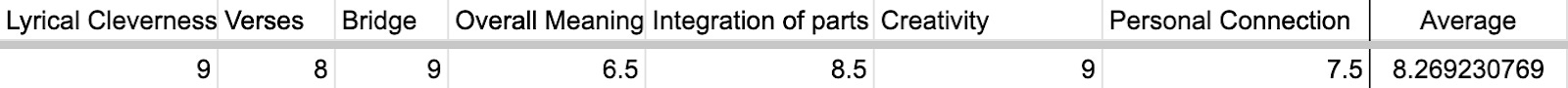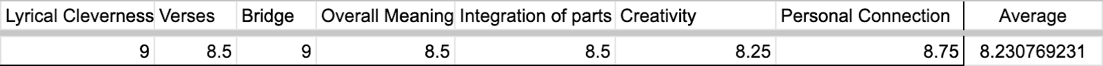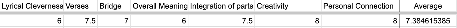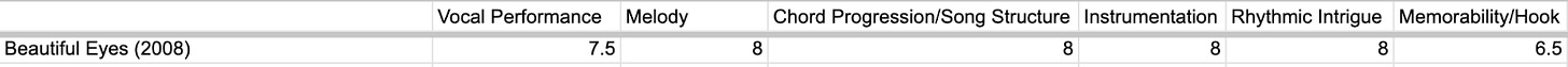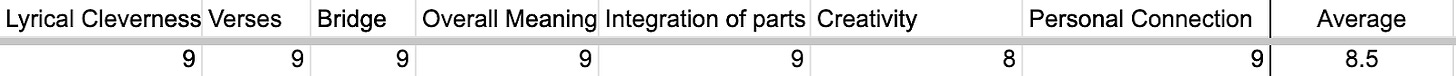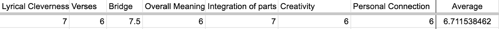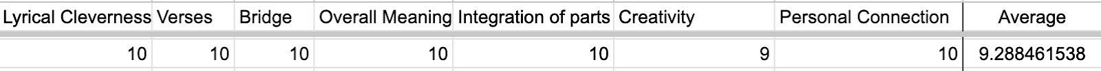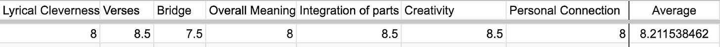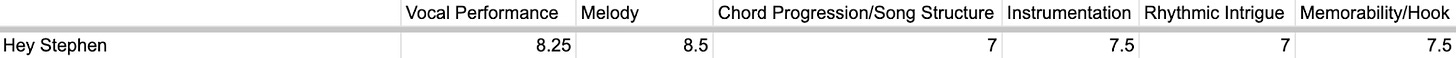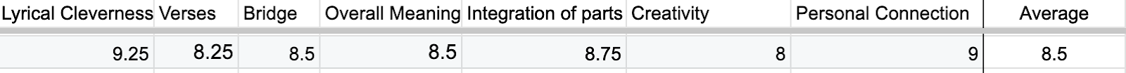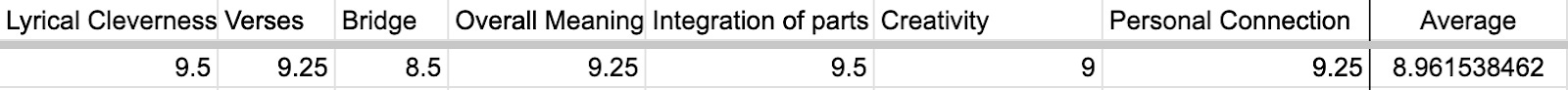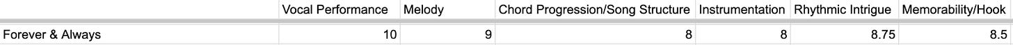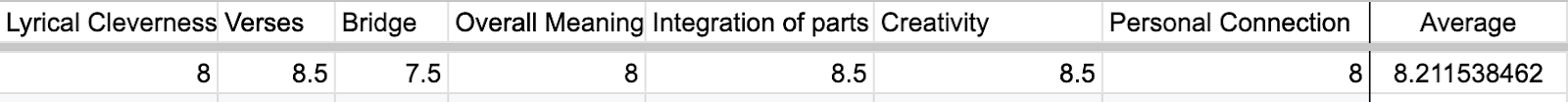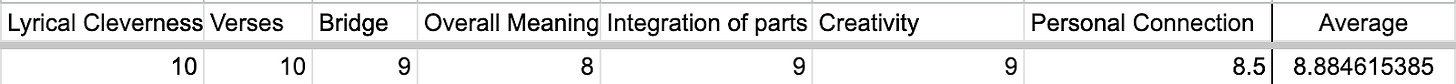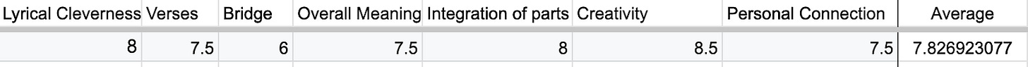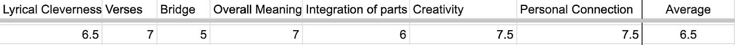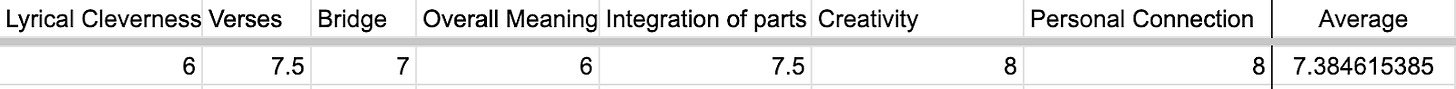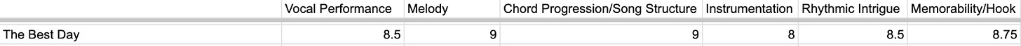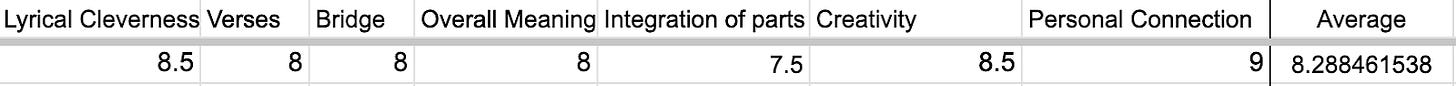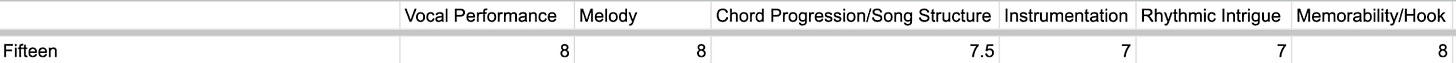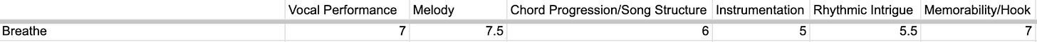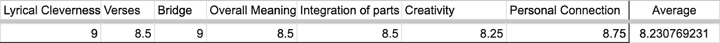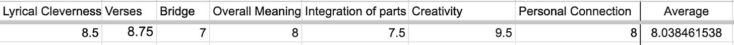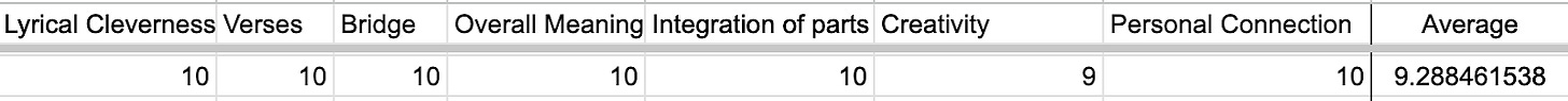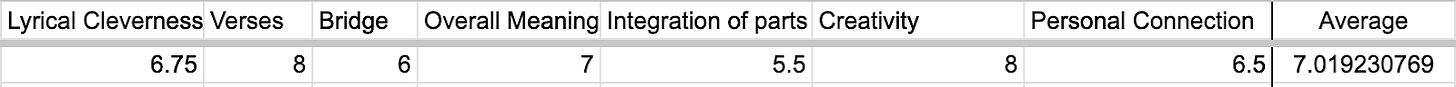 I also have one other post I’ve made which details my inspiration for this blog, as well as my detailed ranking criteria and number system, if you’re curious how I ended up ranking each song down to the hundredth of a point.